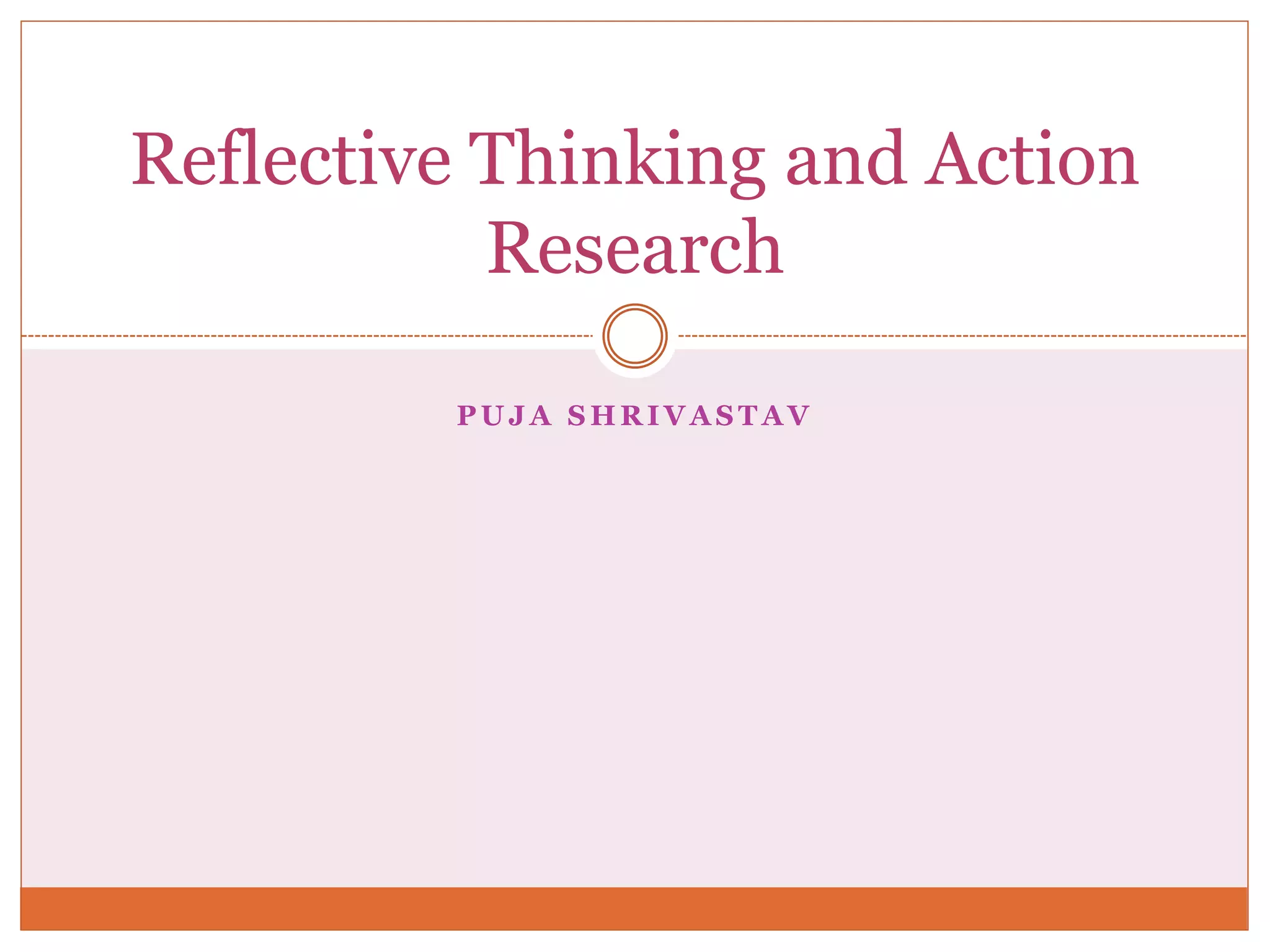 The document discusses the importance of reflective thinking and action research in teacher education, emphasizing how teachers' existing beliefs influence their teaching practices. It outlines the benefits and limitations of reflective practice, the cyclical process of action research, and its role in improving teaching effectiveness and student learning outcomes. The conclusion underscores that engaging in action research positively impacts teaching practices and encourages self-improvement among educators.