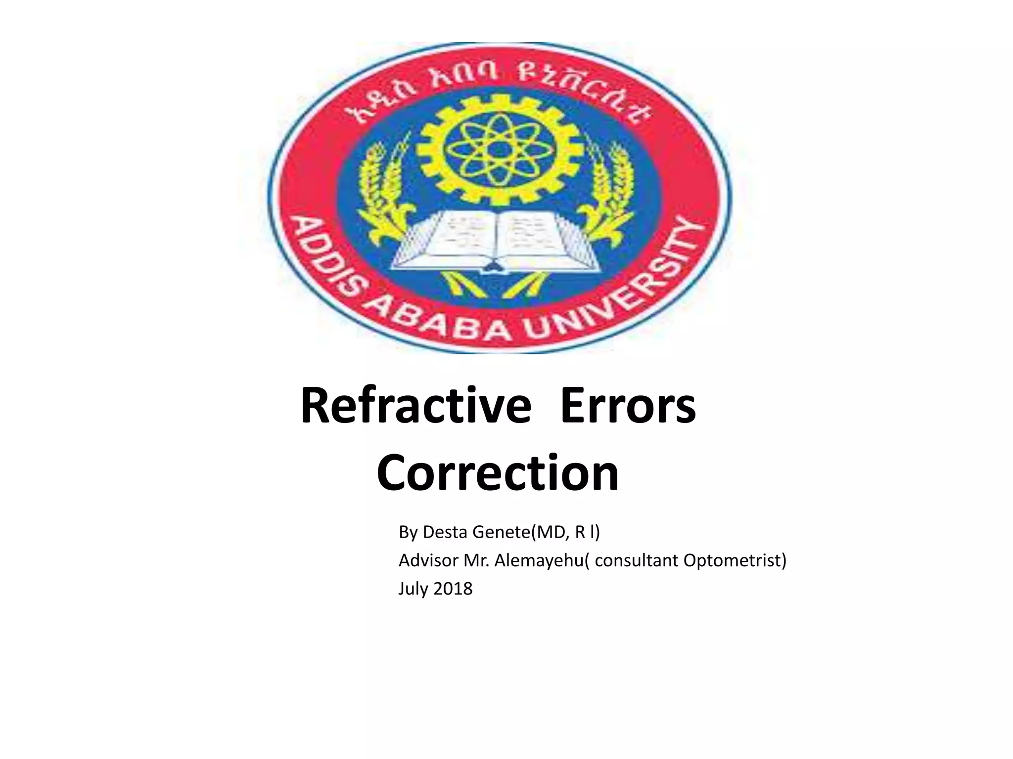 This document provides an overview of refractive errors and their optical correction. It begins with an introduction to optical principles and the concept of the far point. It then discusses the etiology, symptoms, and methods of correcting the main refractive errors - myopia, hyperopia, and astigmatism. Spectacle correction is covered in detail, including the effects on accommodation and binocularity. Full versus partial correction is addressed. The document emphasizes optimizing correction to relieve symptoms while avoiding side effects.