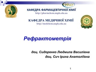 Рефрактометрія – оптичнийметод аналізу, який ґрунтується на