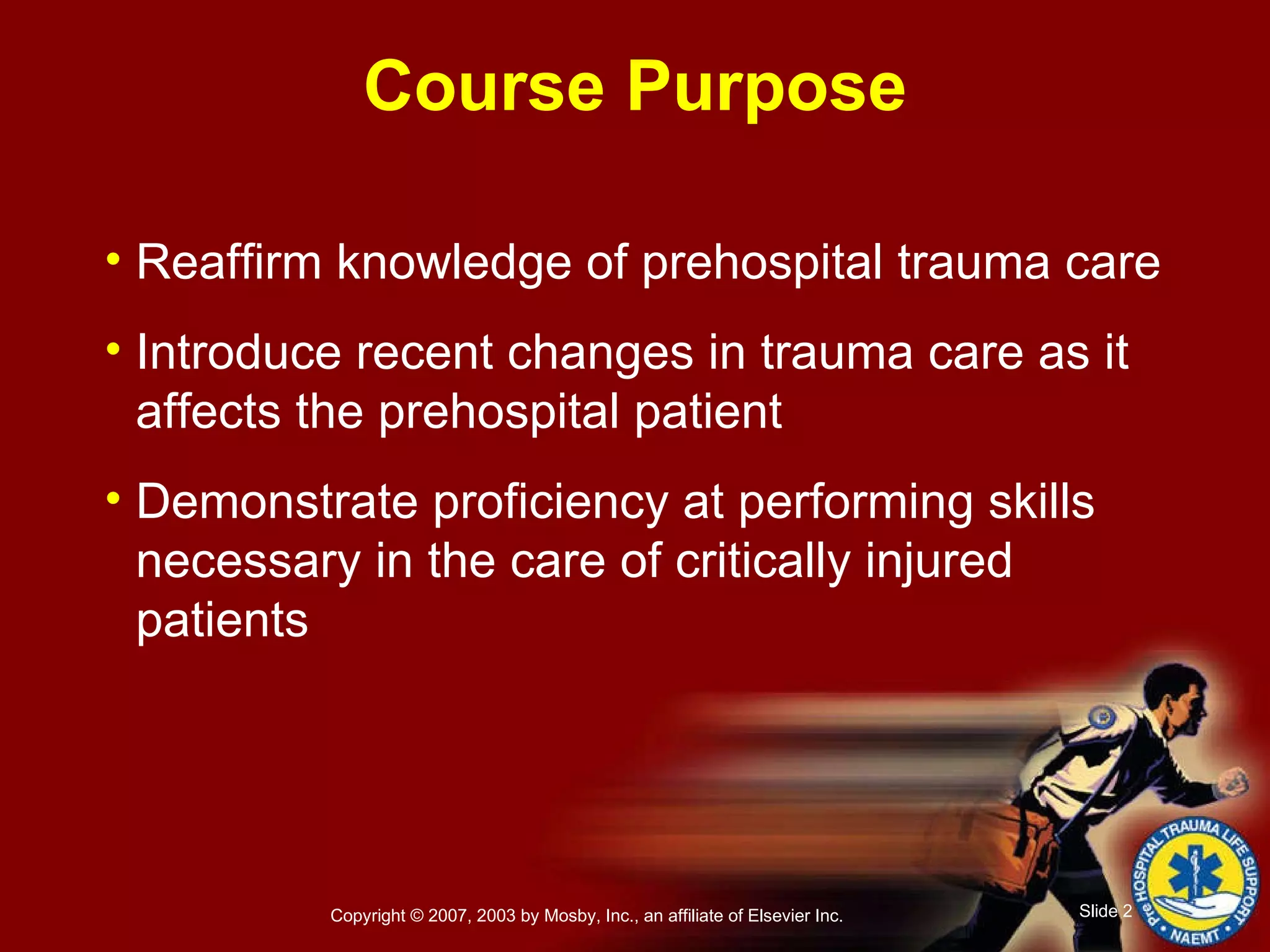 The document provides an overview of a prehospital trauma life support refresher course. It discusses topics like the kinematics of different types of injuries, management of shock, airway management techniques, spinal immobilization, and assessment and management of head, chest, abdominal and spinal trauma. Key skills like the primary and secondary survey process are also reviewed.