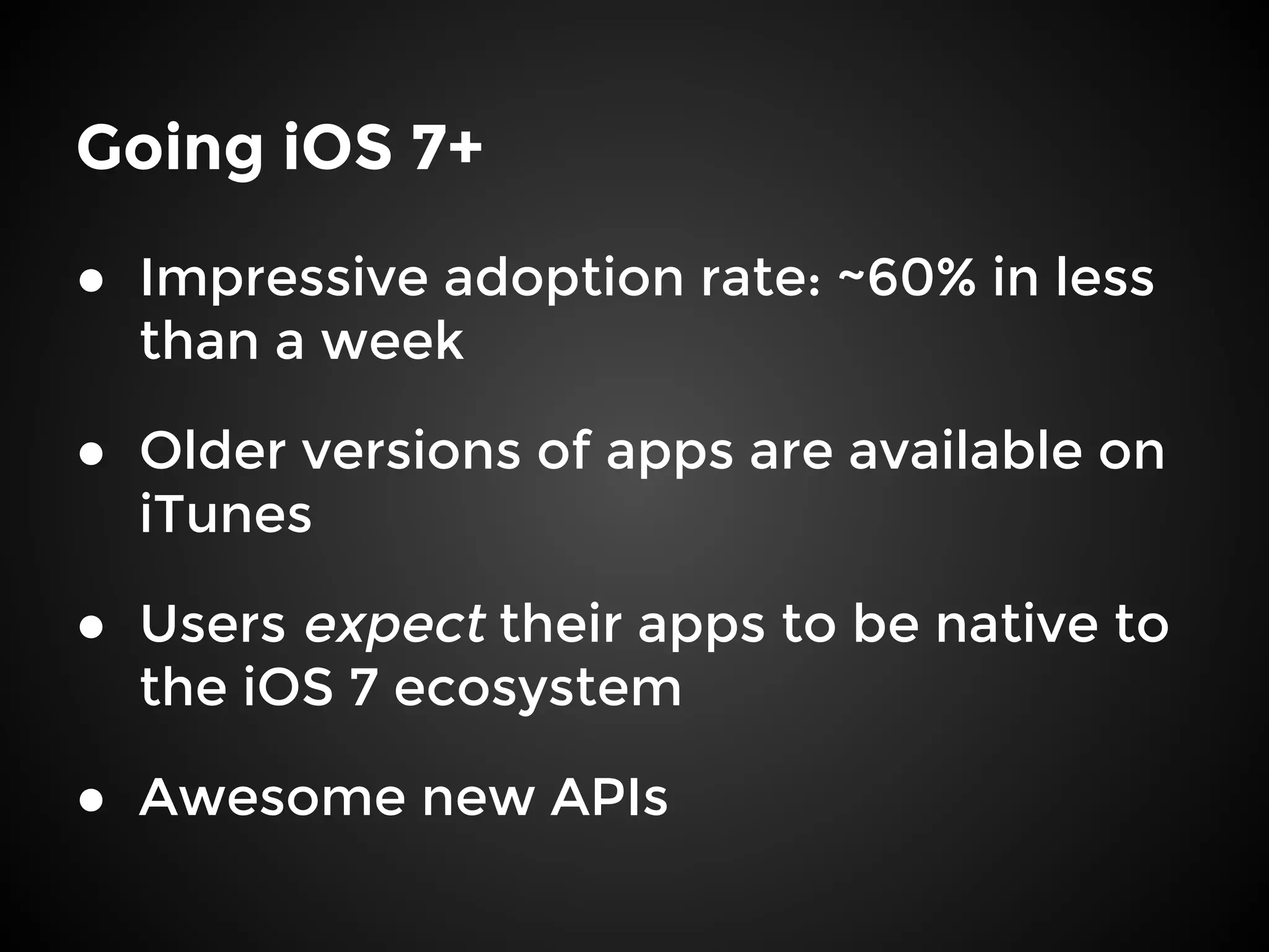 This document discusses refreshing an app for iOS 7. It recommends adopting a modular approach to reduce bloated view controllers by splitting them into categories, using composition over subclassing, and making views data-aware. New iOS 7 APIs like custom view controller transitions require less code. The evolution is an opportunity to rethink an app's architecture and organization for a more maintainable codebase.