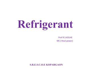 The document provides a detailed overview of refrigerants, defining them as fluids used for heat transfer in refrigeration systems. It classifies refrigerants into primary and secondary categories, discussing their types, properties, applications, and environmental impacts, particularly focusing on ozone depletion and global warming potential. Additionally, it outlines the chemical and thermodynamic characteristics of various refrigerants, highlighting their significance in refrigeration technology.