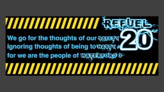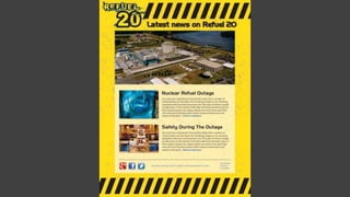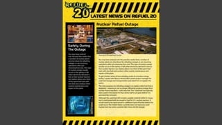 The document presents final logo ideas by Matthew Brazwell for a project related to refuel outages, including primary and secondary logo designs and examples of usage. It ends with an invitation for questions and provides contact information for Brazwell. The document is from a presentation by a member of the digital media team at Satellite.