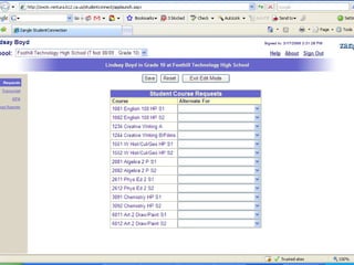 The presentation provided information about registering for classes at Foothill Technology High School for the next school year, including the registration timeline, graduation requirements, UC/CSU entrance requirements, summer school opportunities, and enrichment programs. Students were instructed to complete the online registration form and obtain required signatures by March 18th.