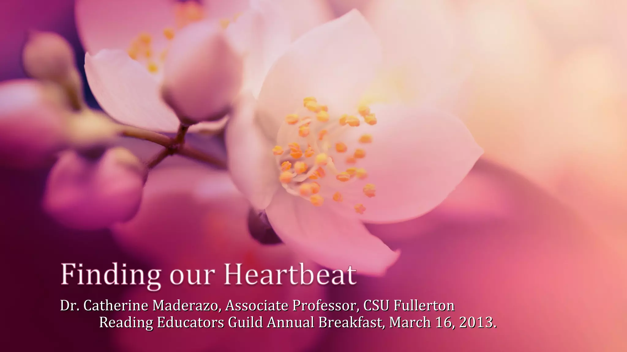 This document summarizes a presentation given by Dr. Catherine Maderazo on transforming reading education through heartfelt language and literacy pedagogy. Some key points from the presentation include addressing the common core state standards by moving from a skills-based approach to one focused on meaning-making, returning to relationship-driven and responsive pedagogy, and fostering lifelong learning and a love of reading for both teachers and students. The presentation also discusses comprehensive literacy instruction, the roles of teachers and students, and recommendations for embracing the common core standards in a way that empowers teachers.