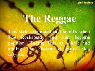 Reggae developed out of rocksteady and ska music in Jamaica in the 1960s, adding rhythm and blues and calypso influences. Early examples include "Long Shot (Bus' Me Bet)" by The Pioneers from 1968. The Wailers, formed by Bob Marley, Peter Tosh and Bunny Wailer in 1963, helped transition between ska, rocksteady and reggae. Bob Marley went on to become one of the most famous reggae artists worldwide, selling over 75 million albums.