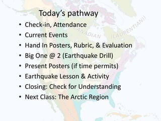 2) Instructions for students to hand in posters and evaluations about the Western Cordillera regions as well as present their posters in class.