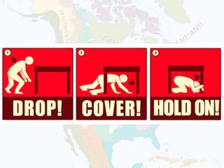 1) An earthquake drill scheduled for 2pm where students will drop, cover, and hold on for 60 seconds before evacuating to the school oval for attendance.