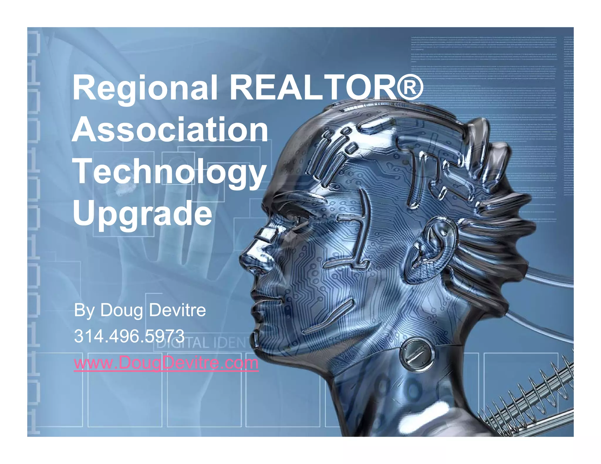 The document outlines a technology upgrade program for a regional realtor association, covering various training topics for association staff, instructors, managing brokers, and sales professionals. It emphasizes the use of low-cost, high-impact technologies for marketing, communication, and education, including social media, blogging, and online video production. The document also highlights strategies for building personal and organizational brands, creating effective online content, and leveraging analytics to improve engagement and business outcomes.
