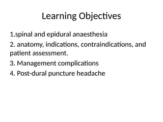 • Spinal anaesthesia is a type of regional anaesthesia in