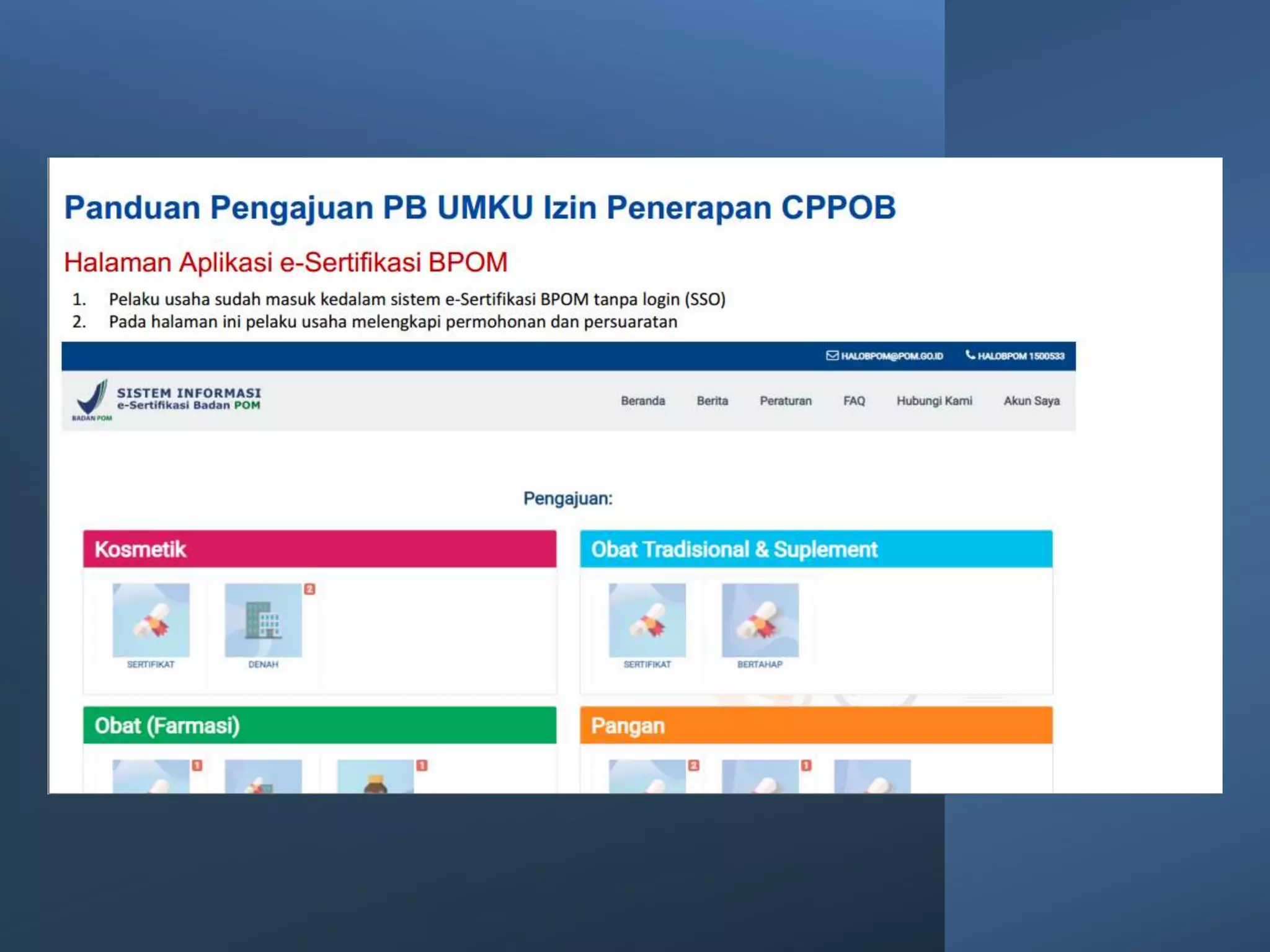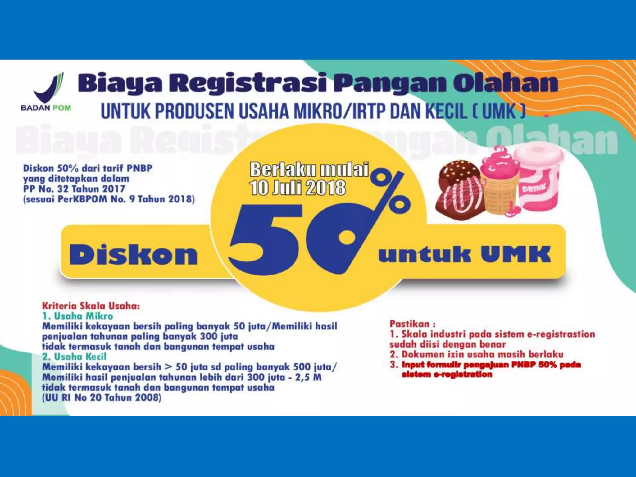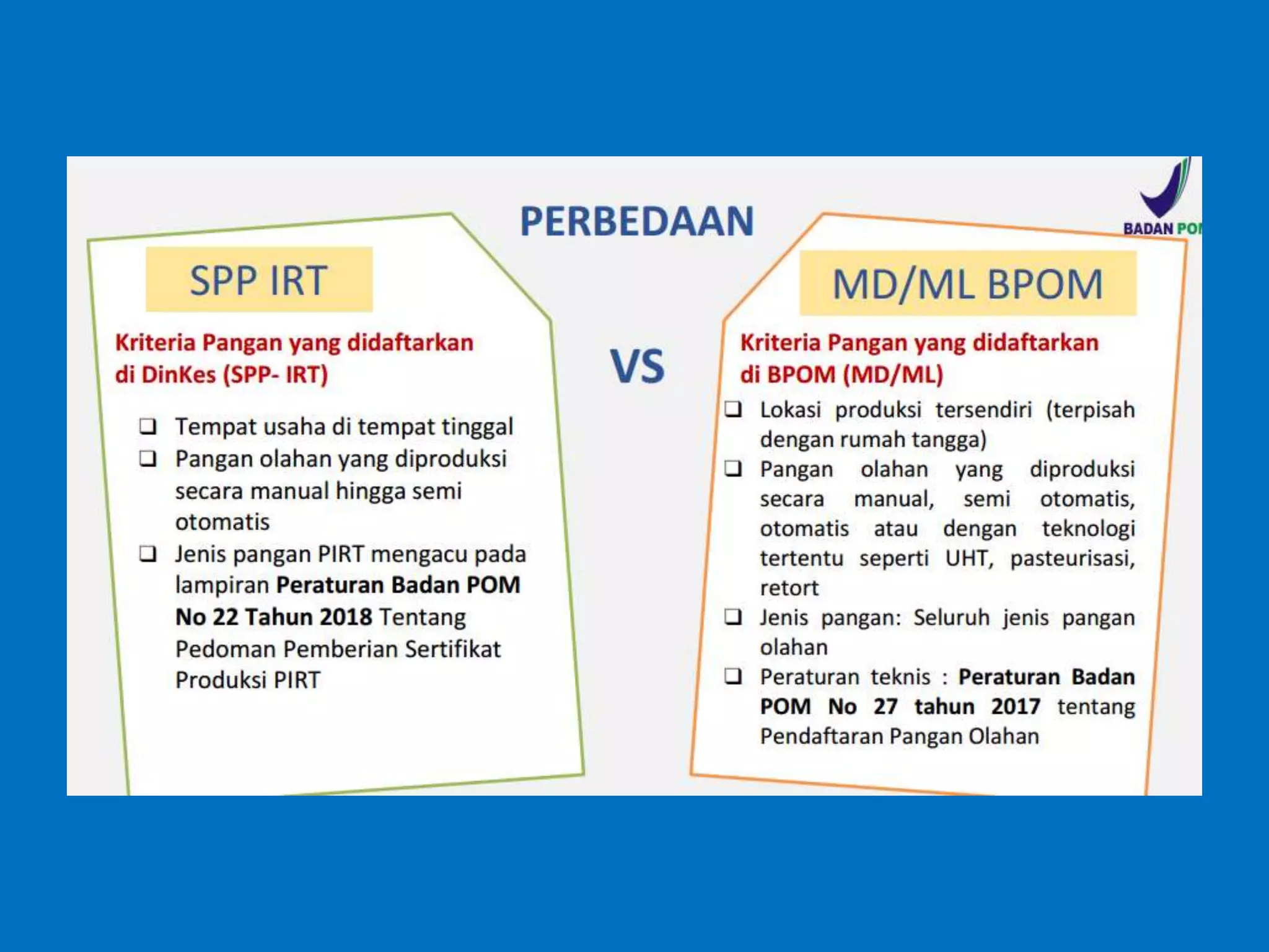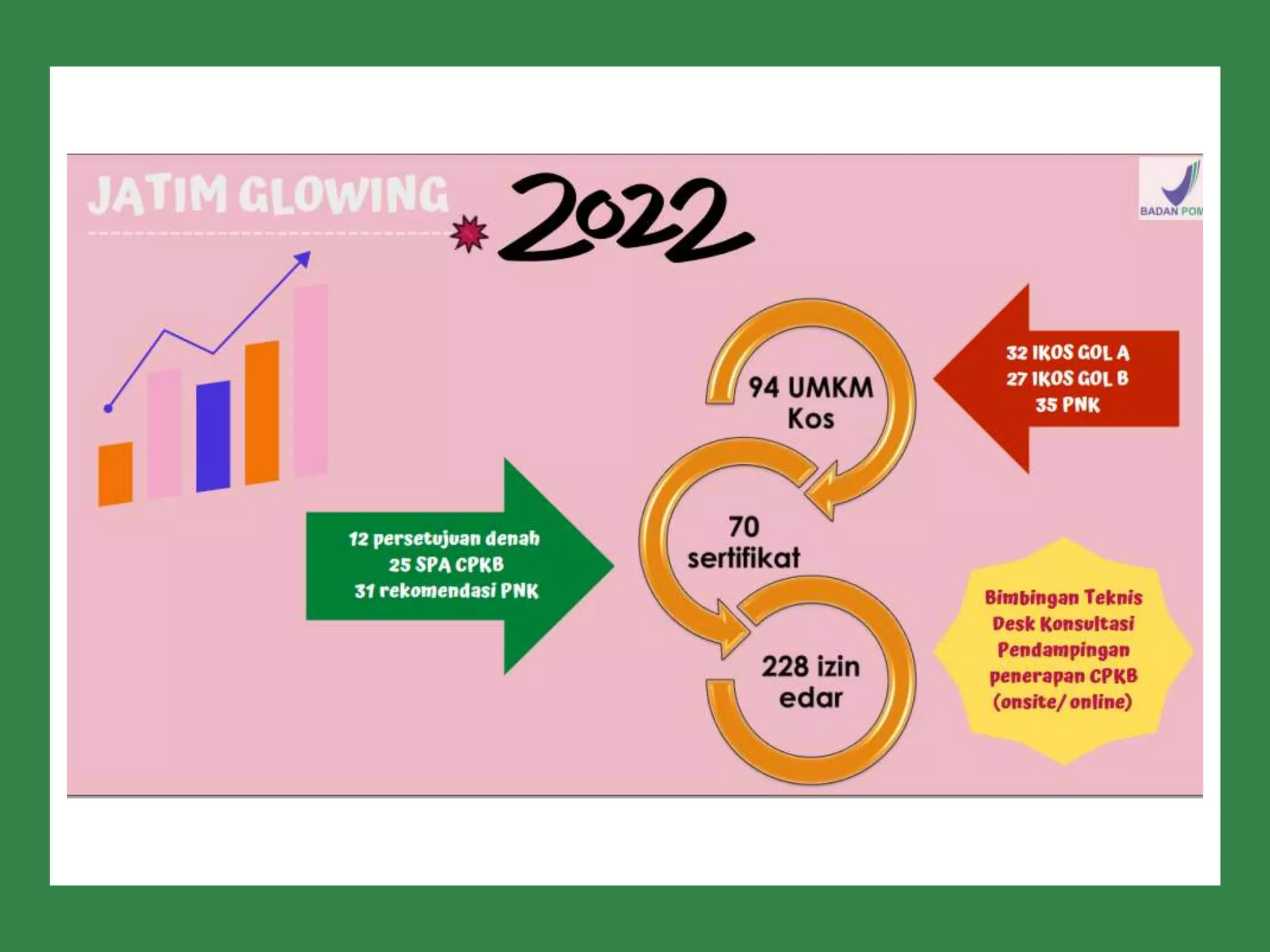 Dokumen ini membahas perizinan pangan olahan oleh Balai Besar POM di Surabaya, mencakup persyaratan keamanan, mutu, dan label pangan olahan. Pelaku usaha diharuskan memenuhi komitmen dan mengikuti pedoman serta peraturan di bidang pangan. Selain itu, terdapat pendaftaran pendampingan UMKM untuk tahun 2023 yang meliputi berbagai biaya dan output terkait produk pangan.