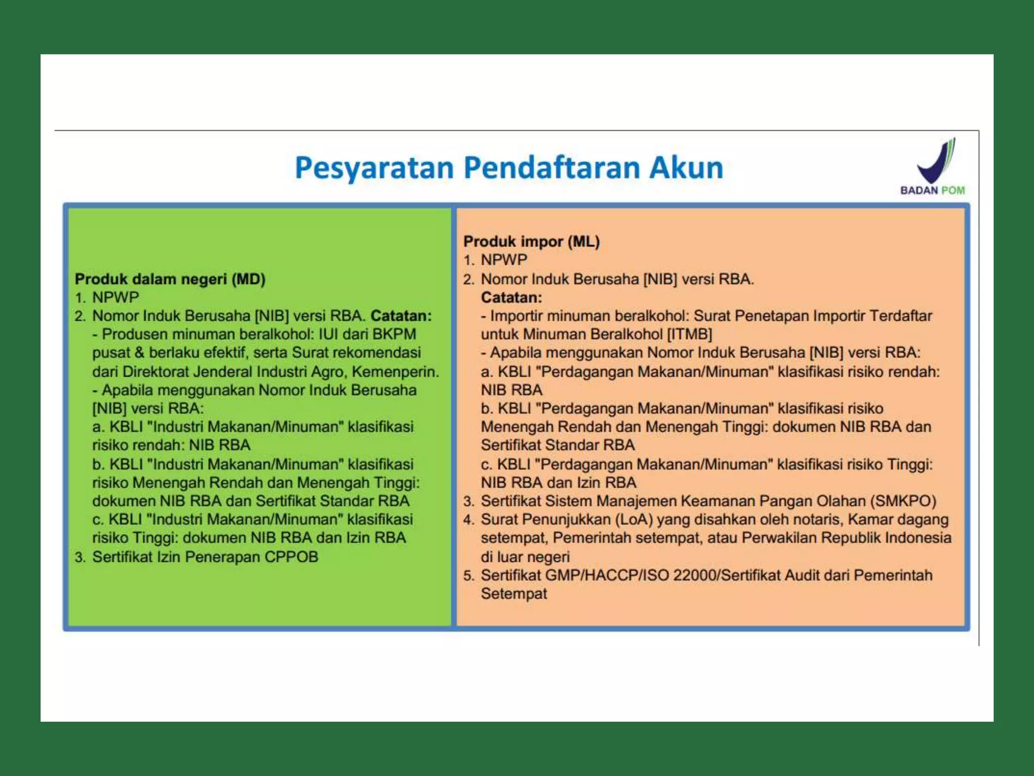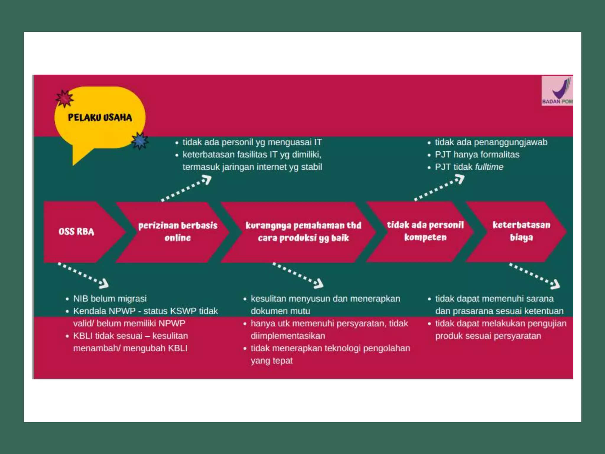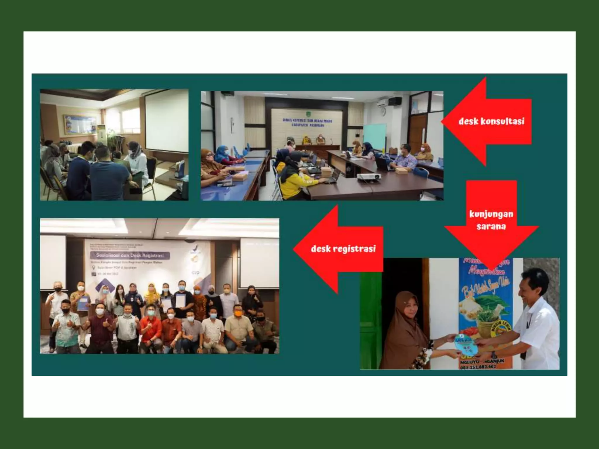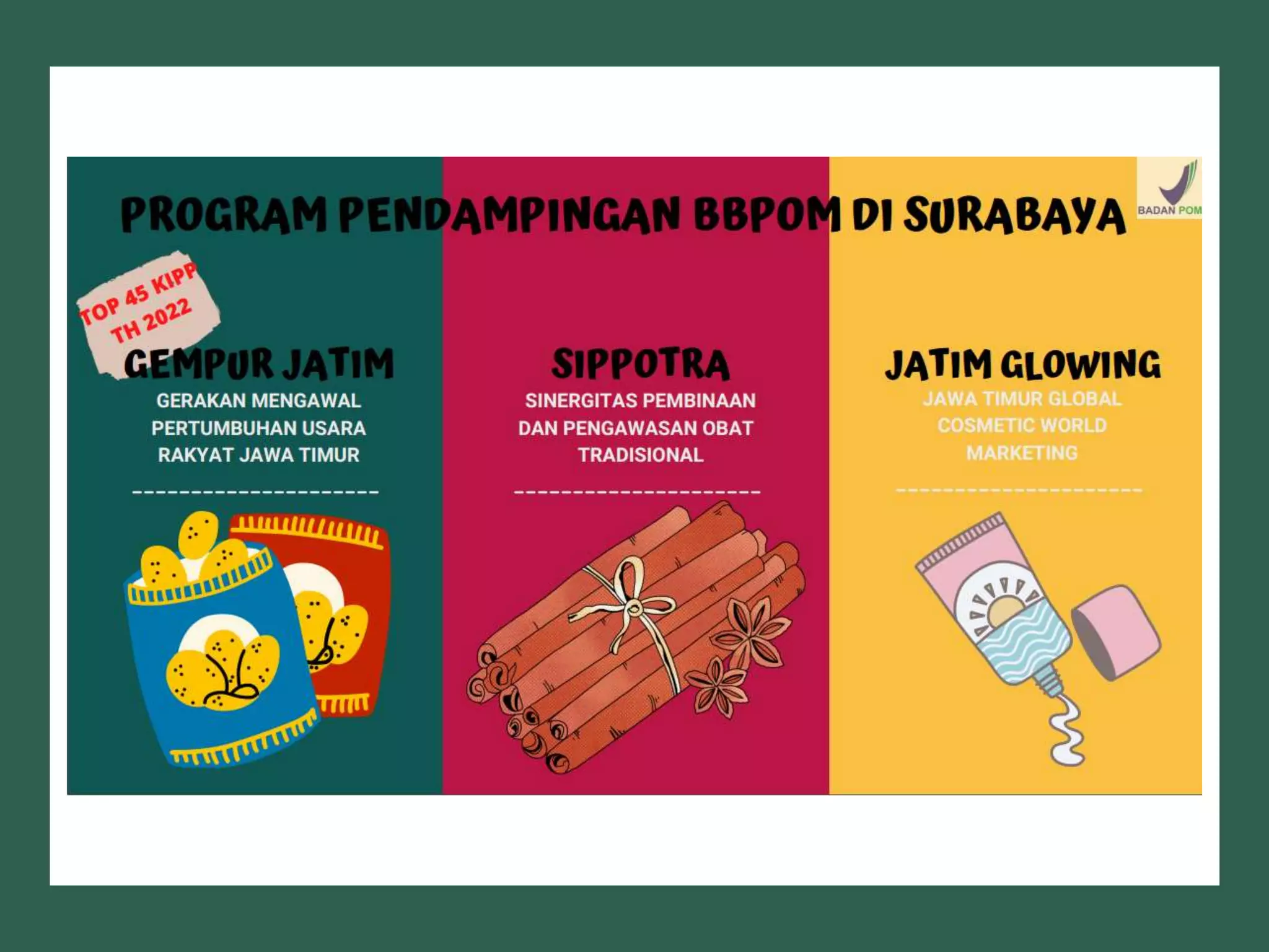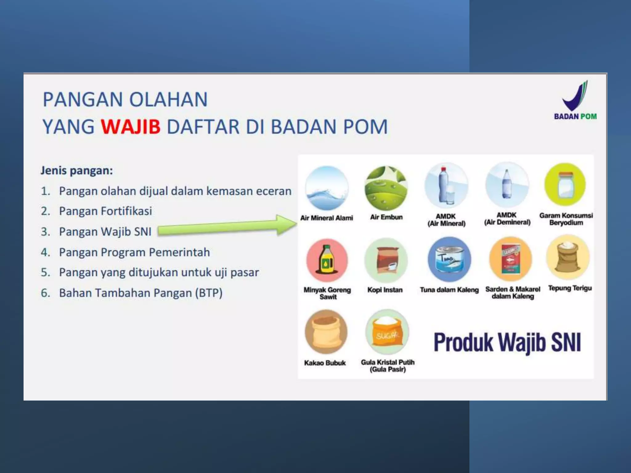 Dokumen ini membahas perizinan pangan olahan oleh Balai Besar POM di Surabaya, mencakup persyaratan keamanan, mutu, dan label pangan olahan. Pelaku usaha diharuskan memenuhi komitmen dan mengikuti pedoman serta peraturan di bidang pangan. Selain itu, terdapat pendaftaran pendampingan UMKM untuk tahun 2023 yang meliputi berbagai biaya dan output terkait produk pangan.