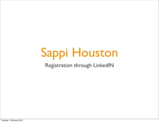 This document discusses registration for Sappi Houston through LinkedIn. No other details are provided about Sappi Houston or the purpose of the registration. The document simply repeats the date Tuesday 7 February 2012 without providing any additional context or information.
