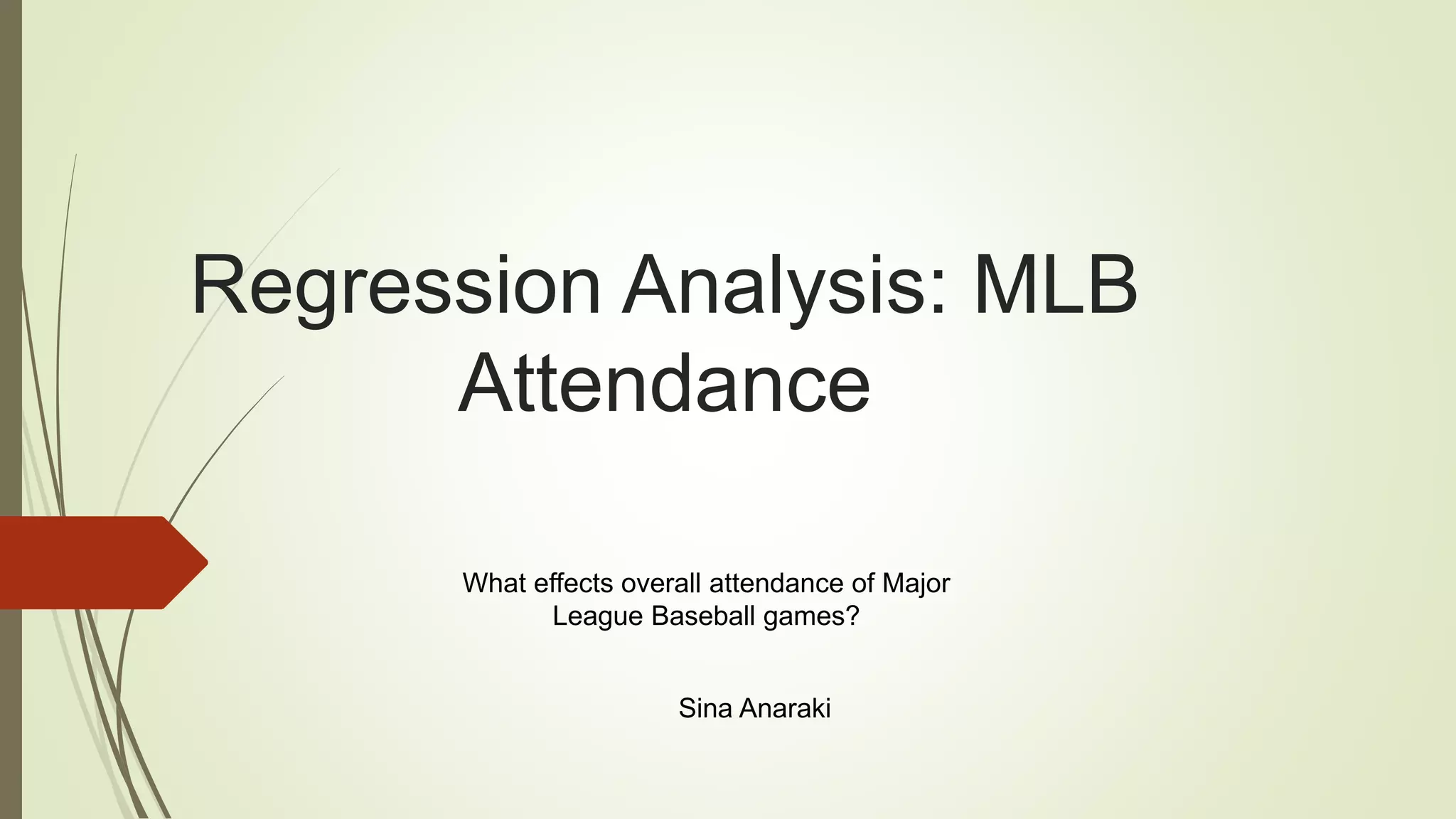 This document presents a regression analysis of factors that affect attendance at Major League Baseball games. The analysis found that team payroll had a statistically significant positive relationship with attendance, while city population had a small negative relationship. The regression model explained around 60% of the variation in attendance. Applying the model to data for San Diego predicted attendance that was close to the actual attendance. However, the analysis had some limitations like multicollinearity and non-normal data distribution. Overall, higher team payrolls were found to be strongly linked to increased game attendance.