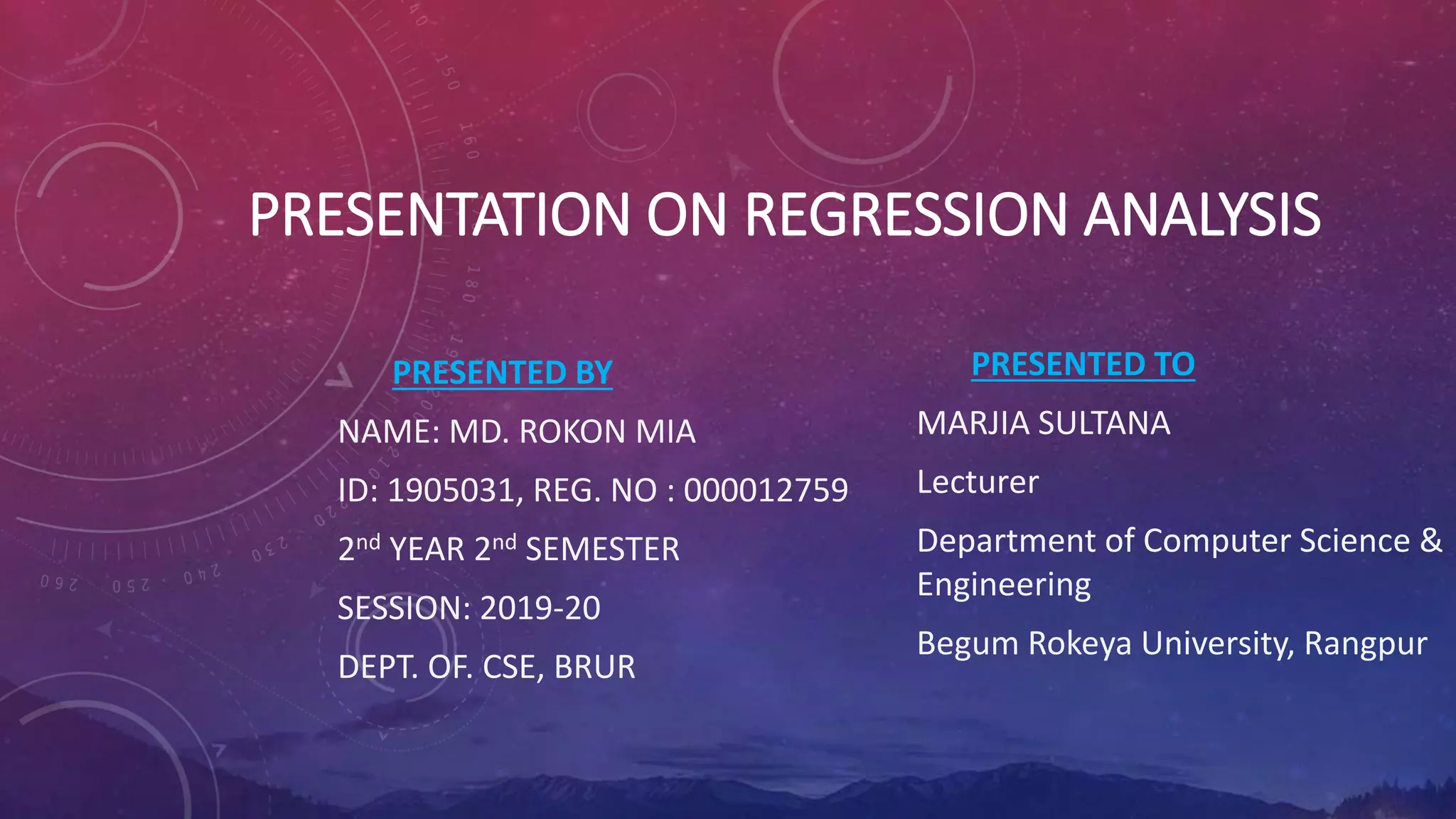 The document discusses techniques like least squares regression to fit regression lines and planes to data and provide examples of applying simple, multiple, and non-linear regression analysis.