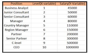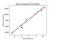 Linear regression is a popular machine learning algorithm that models the linear relationship between a dependent variable and one or more independent variables. Simple linear regression uses one independent variable, while multiple linear regression uses more than one. The linear regression model finds coefficients that help predict the dependent variable based on the independent variables. The model performance is evaluated using metrics like the coefficient of determination (R-squared). Linear regression makes assumptions such as a linear relationship between variables and normally distributed errors.