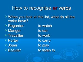 wwee hhaavvee ttoo ffoollllooww aa ppaatttteerrnn.. 11.. RReemmoovvee tthhee eerr 22.. DDeecciiddee wwhhoo iiss ddooiinngg tthhee aaccttiioonn ooff tthhee vveerrbb 33.. AAdddd tthhee ccoorrrreecctt eennddiinngg ttoo tthhee sstteemm