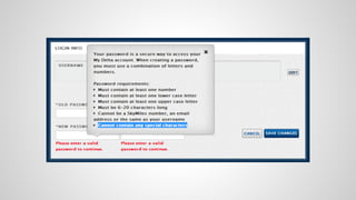 Regular Expressions (regex or regexp) allow for matching patterns in strings. The document discusses regex, including what they are, common uses, and special characters. It provides examples of regex to match telephone numbers, email addresses, and URLs. While regex can be a powerful tool, patterns can become complex and regex risks becoming too restrictive. It's best to start simply and work with consistent, clean data.