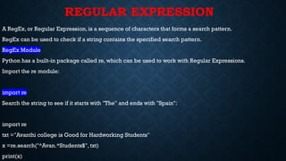 • Python provides a module named re to handle regular expressions.The methods re.match