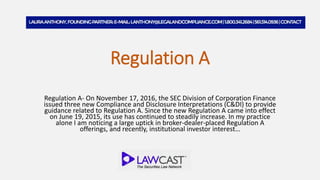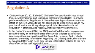 On November 17, 2016, the SEC issued three new compliance and disclosure interpretations (C&DI) regarding Regulation A, which has seen increased usage since its inception on June 19, 2015. The interpretations clarify requirements for additional classes of securities, unregistered securities disclosure, and the calculation of price changes affecting amendments. Notably, emerging growth companies are permitted to omit certain historical financial information when qualifying their Form 1-A under specific conditions.