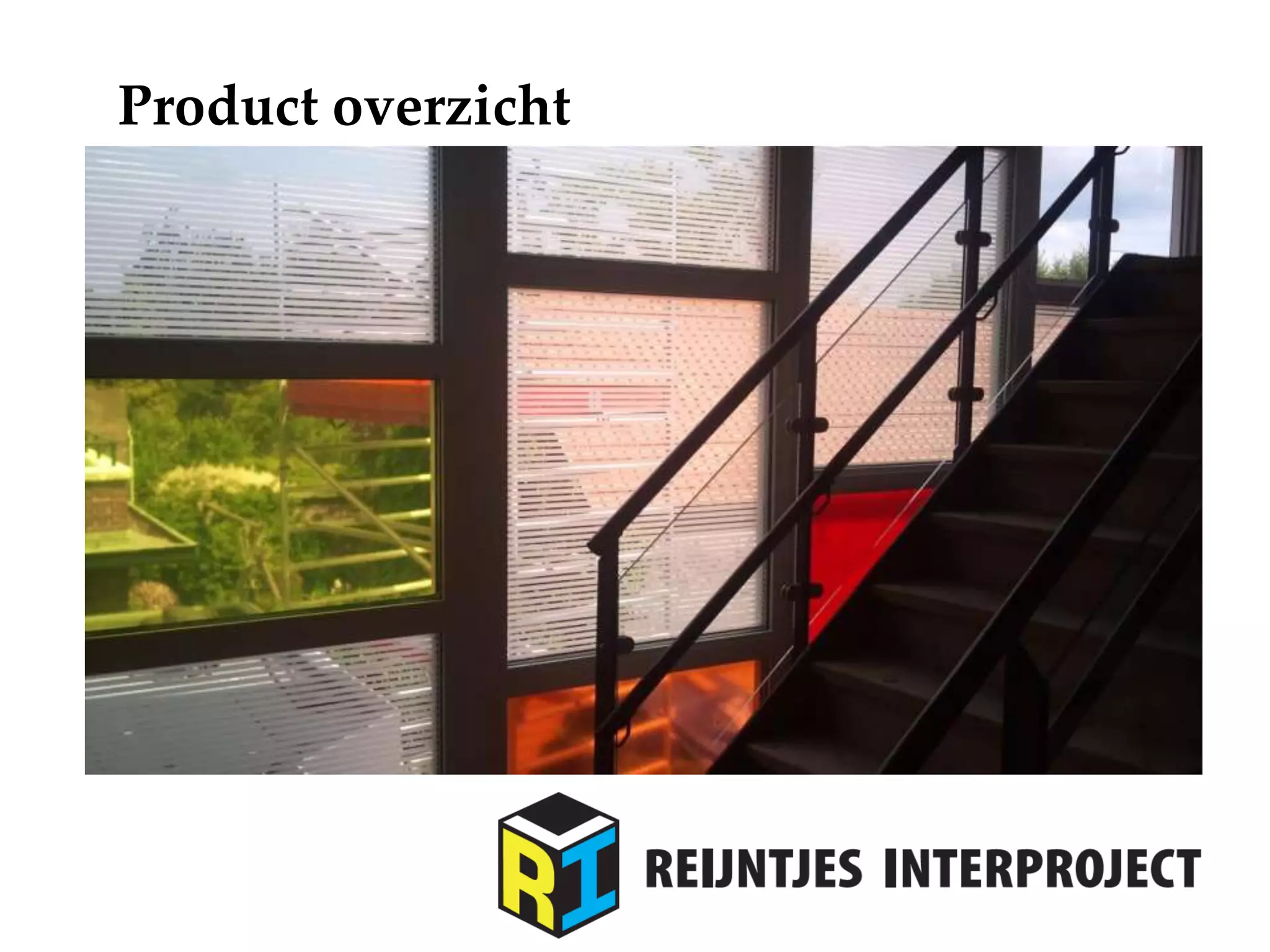 Reijntjes Interproject product presentatie: - Decoratie folie / anti-inkijkfolie - Print folie - Print behang - Snij folie