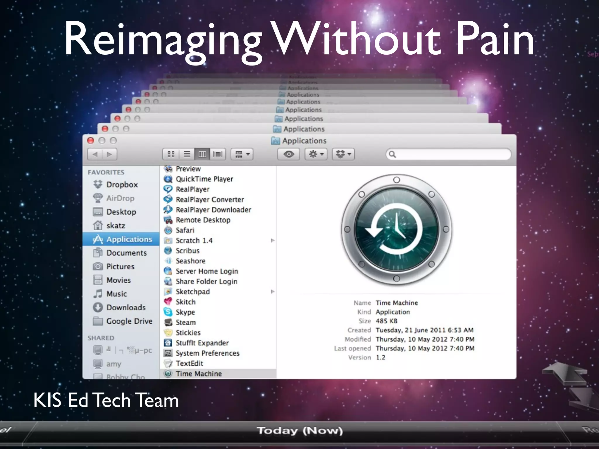 This document provides instructions for preparing a Mac computer for reimaging without losing personal files or customizations. It involves cleaning up files, backing up data using Time Machine, saving notes, bookmarks, fonts, widgets and other applications. After reimaging, the instructions guide setting up a new user account, connecting to WiFi, updating software, restoring preferences and files from backup. The process takes approximately 3-4 hours to complete.