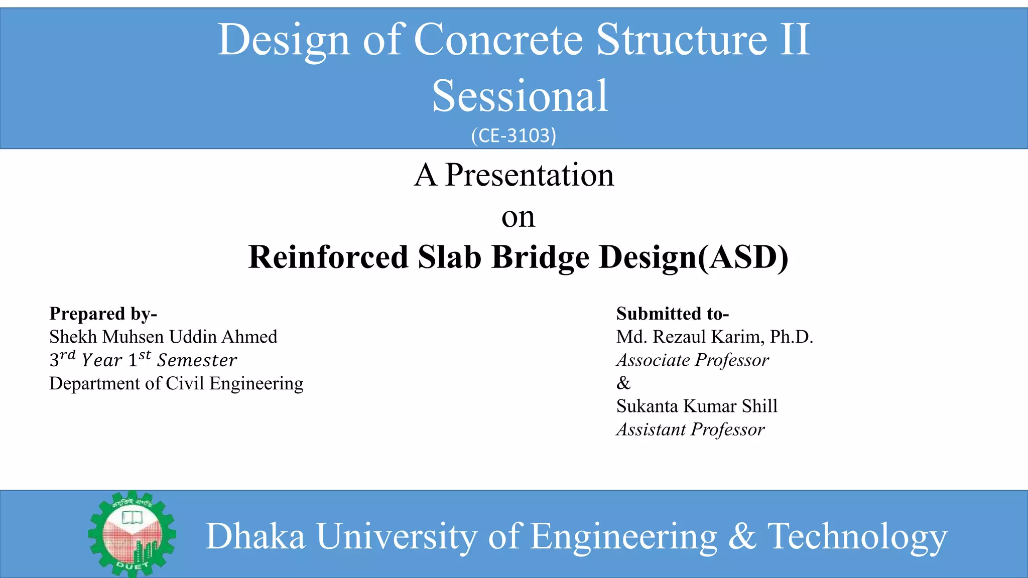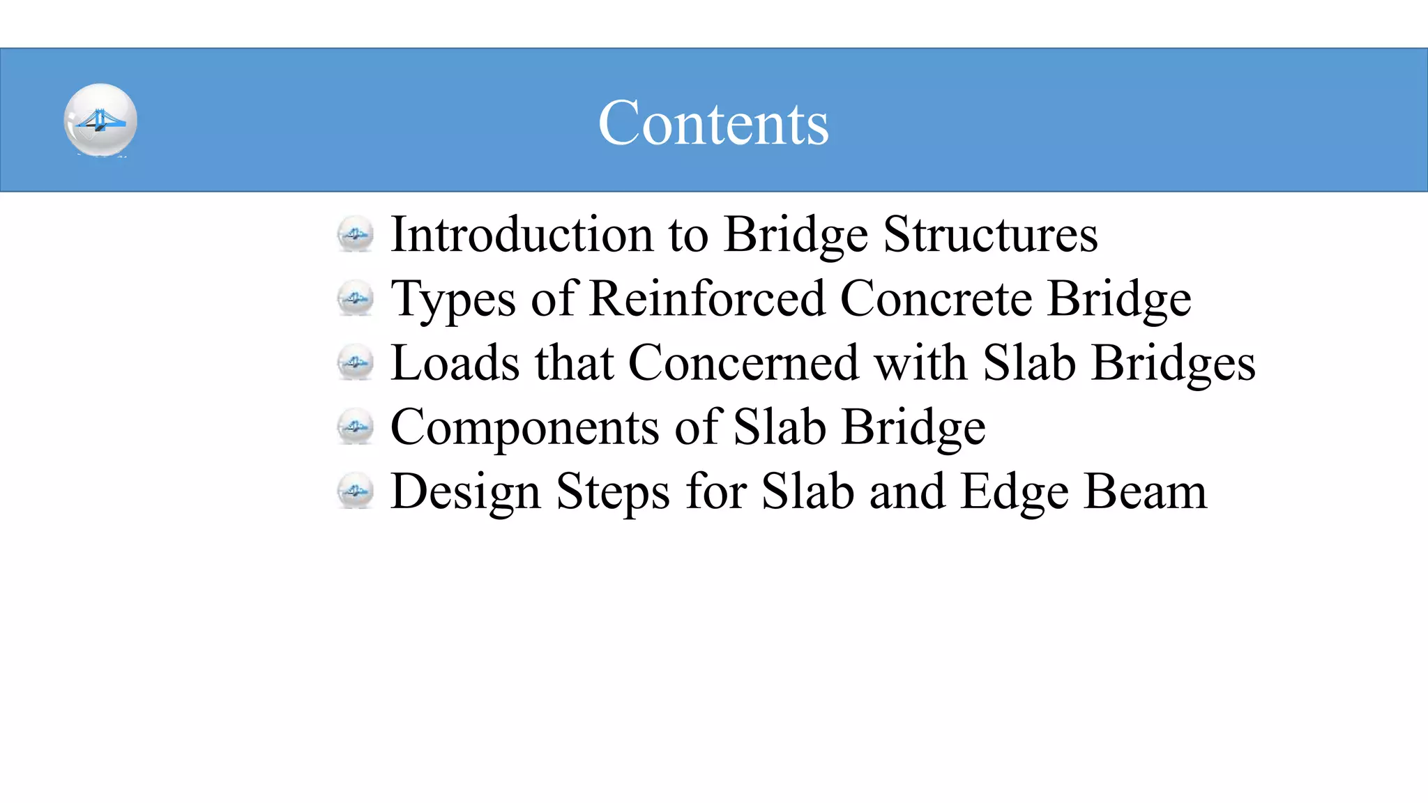 This document provides an overview of reinforced concrete slab bridge design. It discusses the types of reinforced concrete bridges, including slab, beam and slab, arch, box girder, cable-stayed, and integral bridges. It also outlines the loads that must be considered in slab bridge design, including truck, other roadway, sidewalk, and impact loads. Finally, it details the design steps for slab and edge beam components, including calculating bending moments from dead and live loads, determining the effective depth, area of main and distributed reinforcement, and designing the edge beam reinforcement.