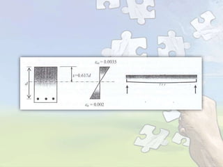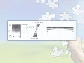 This document provides an introduction to reinforced concrete, including its key components and purposes. Reinforced concrete is a composite material made of concrete, which resists compression well but has low tensile strength, and steel reinforcing bars, which resist tension well. Together they create an economical and strong structural material. The document outlines structural elements, design considerations for safety, reliability, and economy, and limit state design principles which ensure structures do not fail under expected loads. It also discusses factors that affect concrete durability and different failure modes in reinforced concrete depending on steel reinforcement ratios.