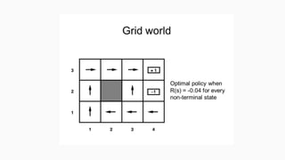 • Thegoal of a reinforcement learning algorithm is to find an optimal policy that will yield more return to the agent