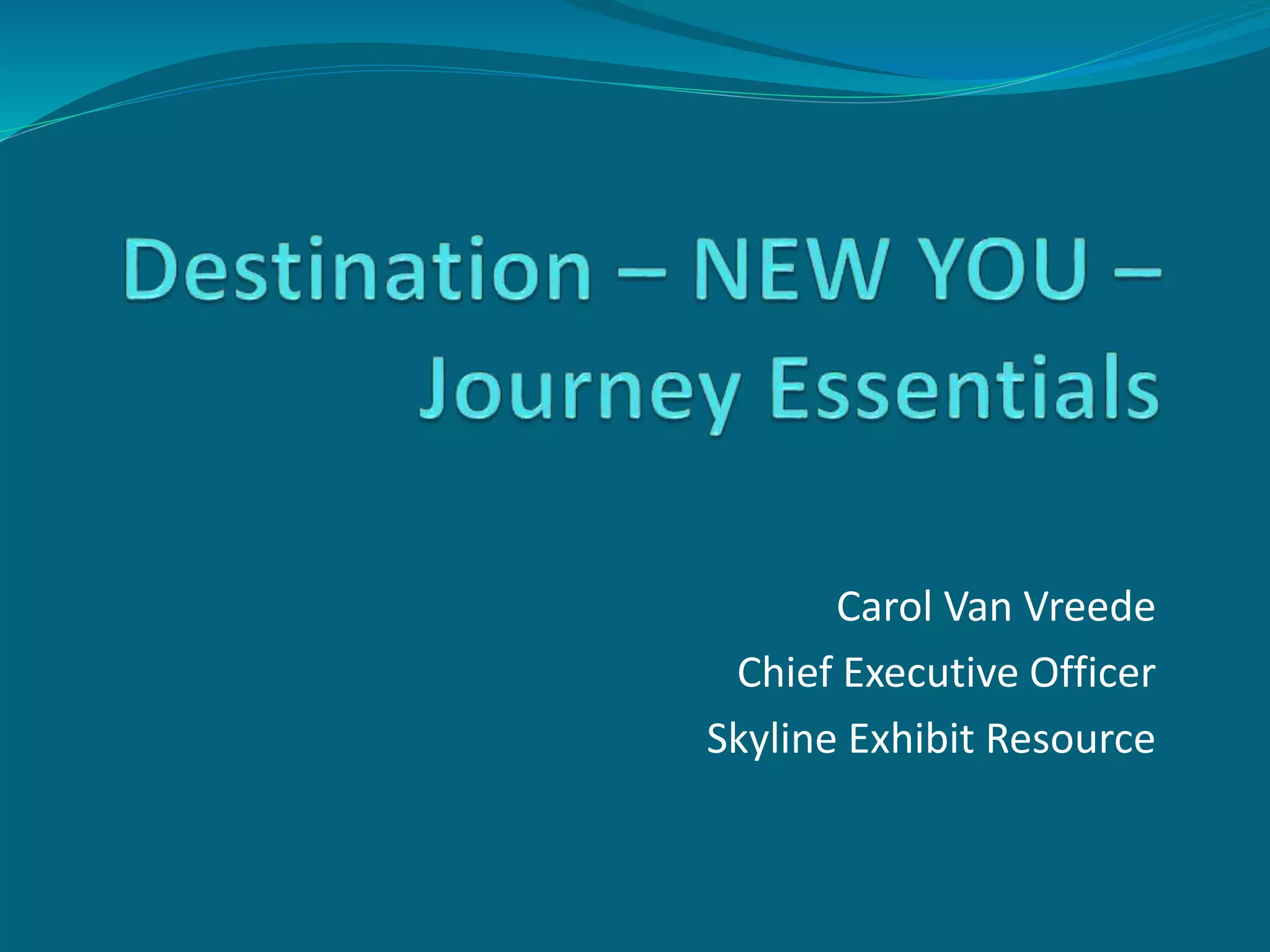 Carol Van Vreede, CEO of Skyline Exhibit Resource, emphasizes the importance of self-belief, optimism, and personal growth throughout her career journey. She encourages individuals to take charge of their lives, control their decisions, and invest their time wisely to realize their aspirations. The document highlights the significance of self-actualization and cultivating positive thoughts while celebrating progress along the way.