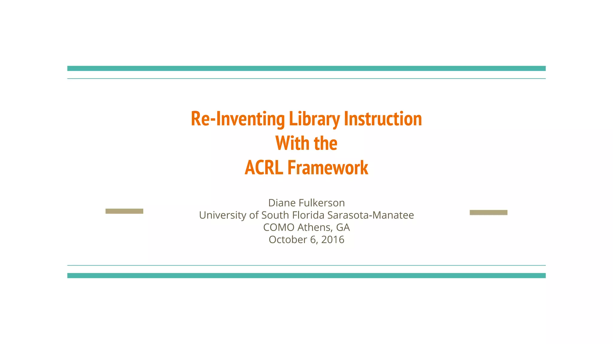 This document discusses reinventing library instruction using the ACRL Framework. It begins by comparing the previous ACRL Standards to the new Framework, noting the Framework focuses on knowledge-based learning through six conceptual frames rather than skills checklists. It then explains the characteristics of threshold concepts and how the Framework provides new opportunities for more flexible, collaborative instruction emphasizing discovery and higher-level thinking. Examples are provided for designing one-shot instruction sessions around student assignments and specific frames using backward design and formative assessment techniques. Specific examples demonstrate applying frames in classes like psychology research methods, marketing research, and criminal justice.