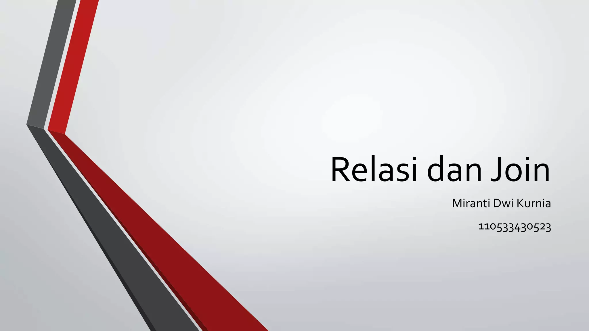 Dokumen ini membahas konsep relasi dan join dalam basis data relasional, termasuk definisi dan klasifikasi berbagai jenis join seperti cross join, inner join, dan outer join. Disertakan juga tips untuk efisiensi penulisan query menggunakan nama alias dan contoh sintaks SQL. Selain itu, terdapat tugas praktis untuk membuat tabel dan mengambil data terkait karyawan dan departemen.