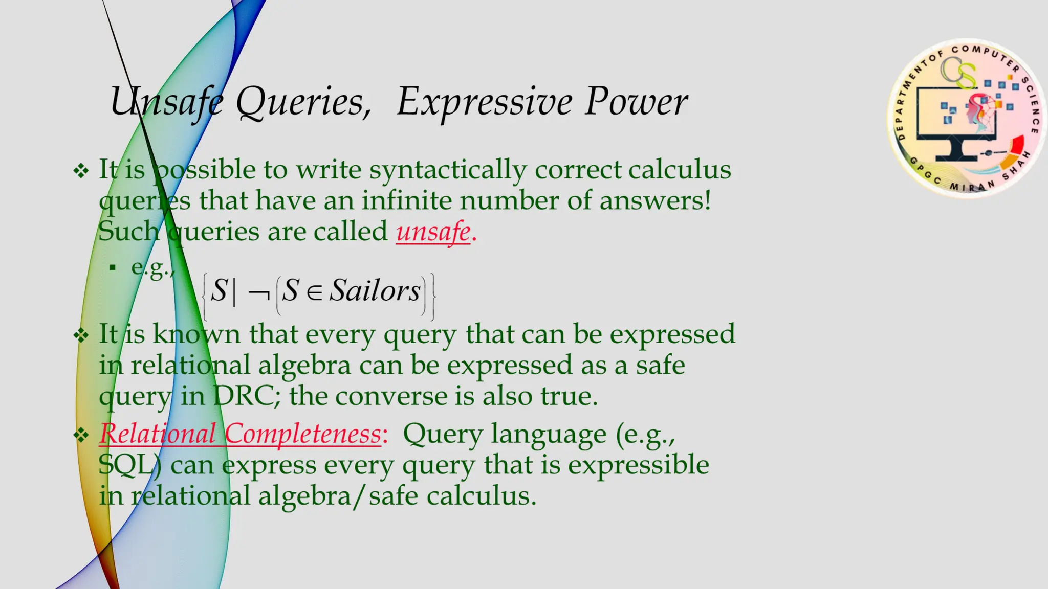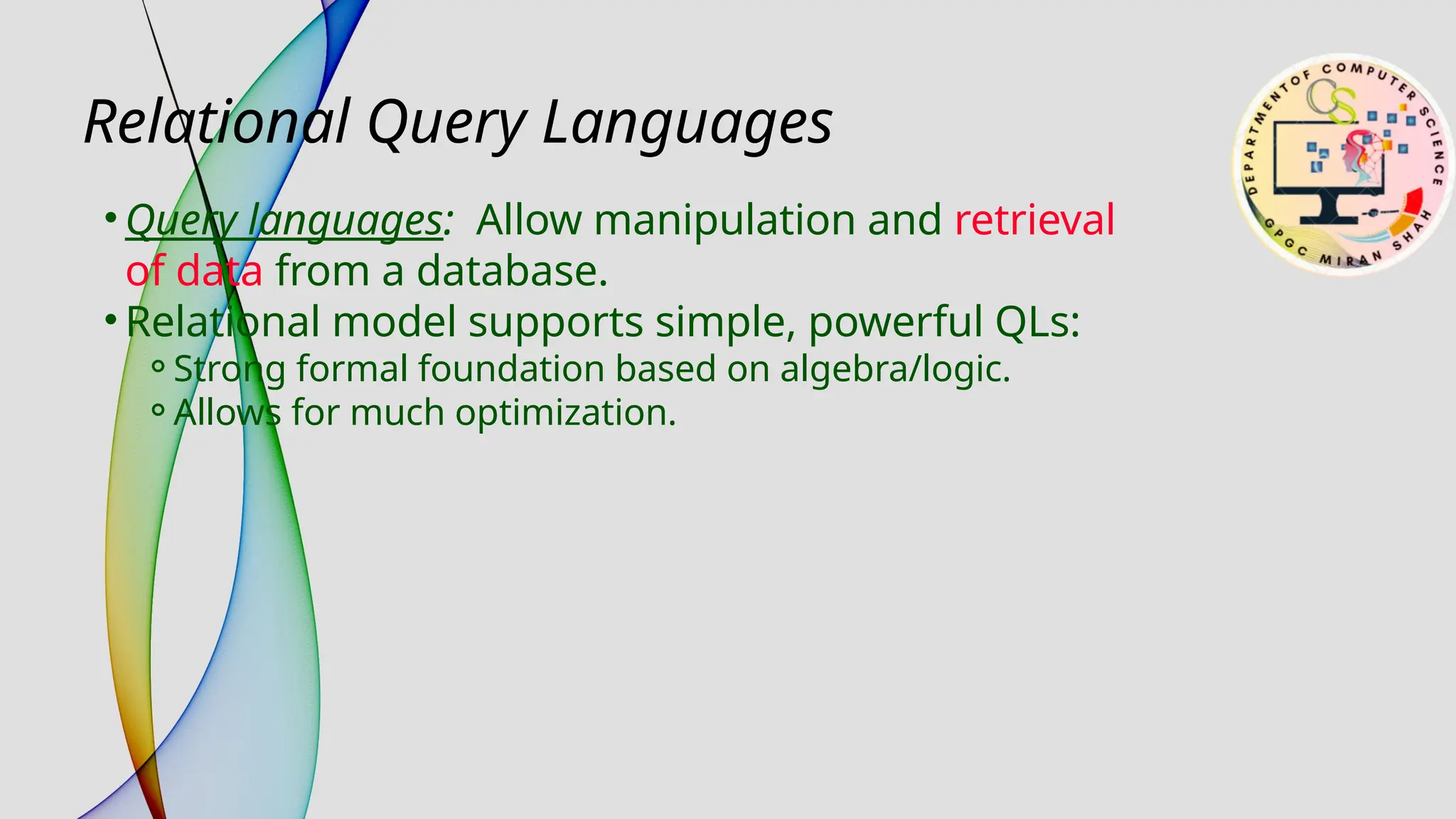 The document provides an overview of relational algebra and relational calculus as foundational components of relational databases and query languages. It outlines basic operations such as selection, projection, union, and various types of joins, as well as the concept of derived operations like division. The document emphasizes the operational nature of relational algebra compared to the declarative nature of relational calculus, highlighting their utility in formulating and optimizing database queries.