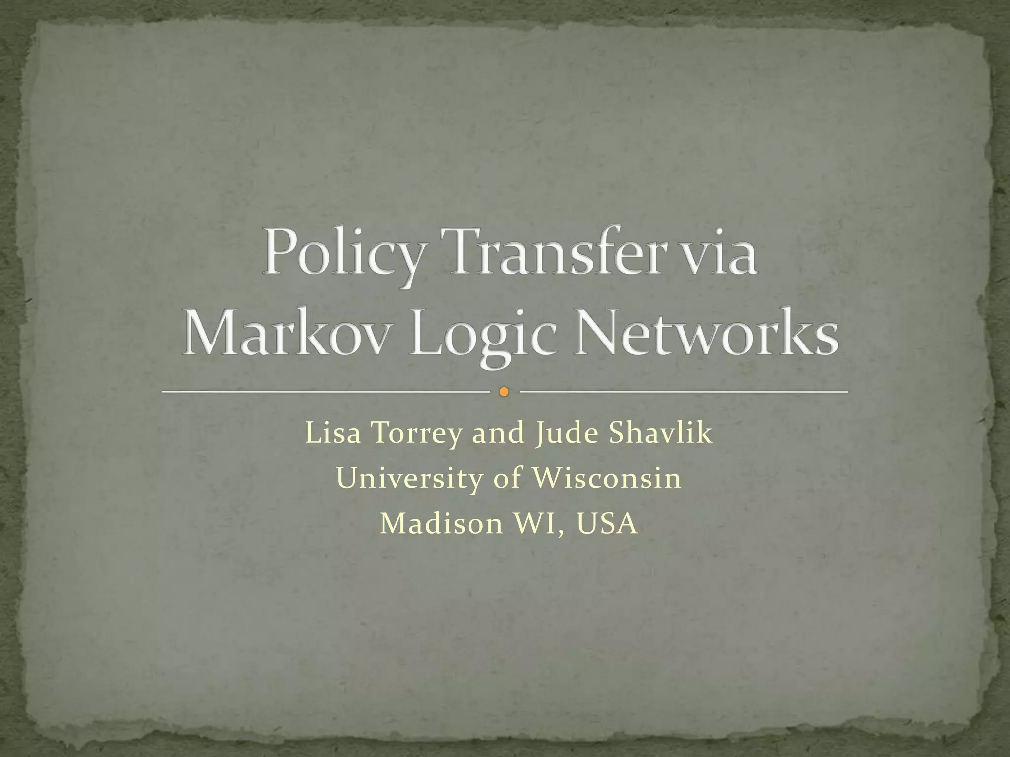 This document summarizes research on using Markov logic networks (MLNs) for transfer learning in reinforcement learning domains. It presents two new algorithms for transferring either a Q-function or policy from a source task to a target task via an MLN. Experimental results show that MLN transfer can improve learning performance in the target task compared to learning from scratch, and that policy transfer often works better than Q-function transfer. However, additional relational knowledge in MLN policies does not always further improve transfer. Future work areas include refining transferred knowledge and exploring relational reinforcement learning using MLNs.
