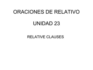 The document discusses relative clauses in English and is divided into four parts. Part 1 defines relative pronouns such as "who", "that", and "which". Part 2 covers defining/specific relative clauses that provide essential information. Part 3 covers non-defining/explanatory relative clauses that provide additional, non-essential information. Part 4 provides exercises for students to practice forming relative clauses.