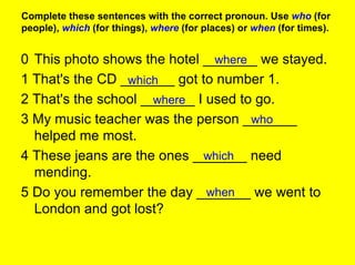 1) Last year we spent our holidays in Scotland, which is in the north of Great Britain. We first went to Edinburgh, which is the capital of Scotland. Arthur Conan Doyle, who wrote the Sherlock Holmes stories, was born in Edinburgh.
