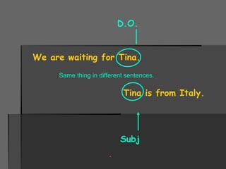 The document discusses using relative clauses to combine two sentences into one sentence. It explains that a relative pronoun like "who" or "that" can be used to substitute a common item between two sentences and join them together. It also distinguishes between defining and non-defining relative clauses, noting that defining clauses do not use commas while non-defining clauses do use commas to provide extra contextual information.