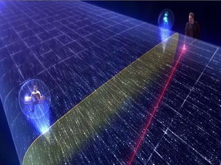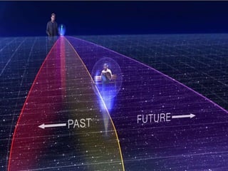 The document explores the concept of time from both Newton's and Einstein's perspectives, contrasting absolute time and space with the relative and interconnected nature of spacetime. It discusses how time is perceived differently depending on the observer's motion, as well as the effects of gravity on time, including time dilation. Additionally, it touches on the philosophical implications of time as an illusion and the arrow of time dictated by entropy.