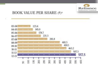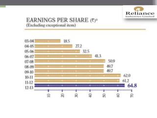 This document provides information about the group members, introduction, history, management, organizational culture, share prices, and financial ratios of Reliance Industries Limited. Some key details include: