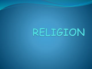 Religion is a social institution found in all societies that helps explain life's mysteries and provide meaning and purpose. While religions vary in beliefs and practices across places and times, they generally propose sacred explanations for life's questions like what happens after death. Sociologists study how religion impacts society and social institutions, and how society shapes religion. Functionalism views religion as promoting social cohesion by creating a community and shared values, while Marxism sees religion preventing awareness of social inequalities. Individual perspectives emphasize how people construct their own religious beliefs and relationships.
