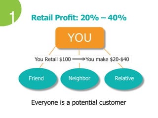 Relìv is a direct selling company that provides nutritional supplements and weight loss products, with a mission to nourish people's bodies, minds and spirits. It was founded over 20 years ago and has a solid foundation, manufacturing its own products and focusing on quality and clinically proven formulas. The document promotes the business opportunities through Relìv's direct sales model and success system for distributors.
