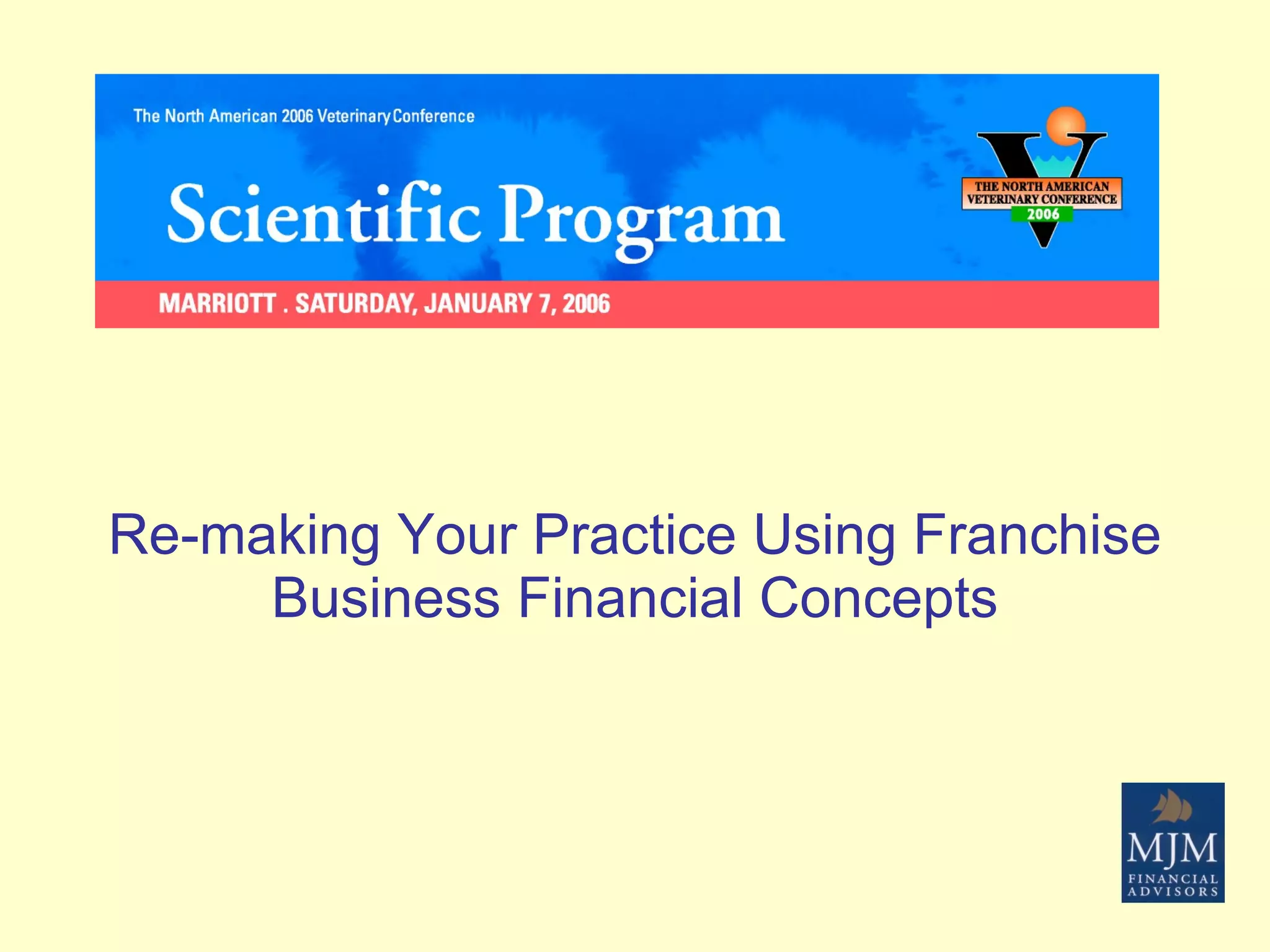 The document discusses various concepts from franchise business that can be applied to veterinary practices, including implementing protocols, multi-branding strategies, standards of accreditation, professional certifications, cost segregation studies, and balanced scorecards. It provides examples of how these concepts have been used successfully in other industries and businesses.