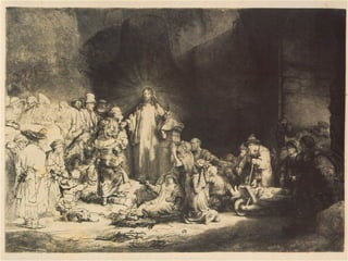 Rembrandt (1606-1669) Elseu pare era moliner. Malgrat el fet de provenir d'una família amb escassos mitjans, els seus pares li van procurar una educació acurada. Rembrandt va començar els seus estudis en l'Escola Llatina, i a l'edat de 14 anys va ser admès en la universitat de Leiden. No obstant açò la va abandonar prompte per a estudiar art, al principi amb un mestre local, Jacob van Swanenburch i després, a Amsterdam, amb Pieter Lastman , cèlebre per les seues pintures històriques. Després de sis mesos, després de dominar tot el que havia après, Rembrandt va tornar a Leiden, on prompte se li va tenir en tan alta consideració que, malgrat no tenir més de 22 anys, va començar a comptar amb els seus primers deixebles. Rembrandt va pintar més de 600 quadres i va produir nombrosos dibuixos i gravats .