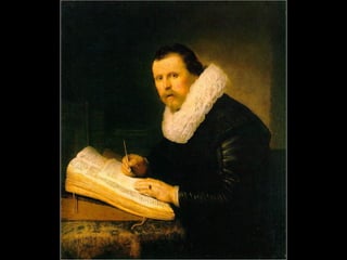 Rembrandt (1606-1669) Artistaholandés del barroc, és un dels més grans pintors de la història de l'art occidental. El seu nom complet era Rembrandt Harmenszoon van Rijn . Va ser un intèrpret excepcional de la naturalesa humana i un mestre de la tècnica, no solament pictòrica sinó també del dibuix i del gravat. La seua obra va produir un gran impacte en els seus contemporanis i va influir en l'estil de molts artistes posteriors. És probable que no existisca cap pintor que haja igualat a Rembrandt en la seua utilització dels efectes del clarobscur o en l'empastament vigorós. Rembrandt va nàixer en Leiden el 15 de juliol de 1606.