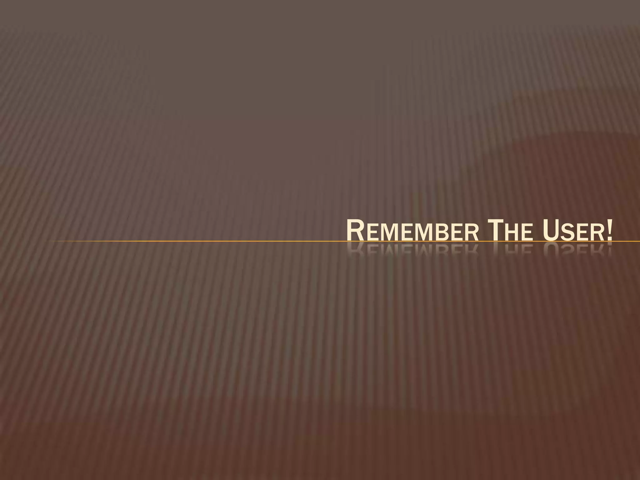 This document discusses the importance of focusing documentation on the end user. It emphasizes determining the user's goals, work environment, and information needs to provide the right information at the right time. It also stresses using videos and positioning information at the user's workstation. Finally, it encourages taking a user-centered approach to design and testing documentation to ensure usability.