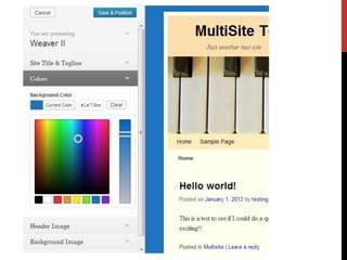 This document provides guidance on jazzing up a WordPress website for free by remodelling it with new themes, images, and content. It discusses where to find free themes and images that are responsive and customizable, looking at features like colors and widgets. It also offers tips on what to look for in themes and images, such as sizes and file formats. Finally, it provides suggestions for sources of new content for a library website, like analytics, board meetings and new materials. The goal is to introduce fresh themes, images and content to remodel a WordPress site for free.