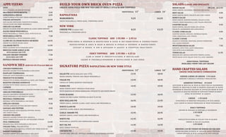 This document contains the menu for Remo's Brick Oven Pizza Co. including appetizers, salads, sandwiches, pizzas, pastas, and desserts. It offers a variety of Italian dishes made with fresh ingredients and baked in a brick oven to provide an authentic Italian dining experience. Customers can also order party trays with options to serve 6-8 or 10-12 people.