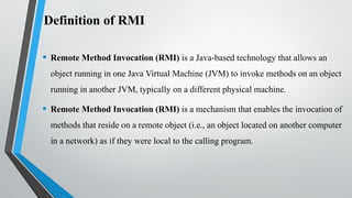 •Remote Method Invocation (RMI) is a Java-based technology that allows an
