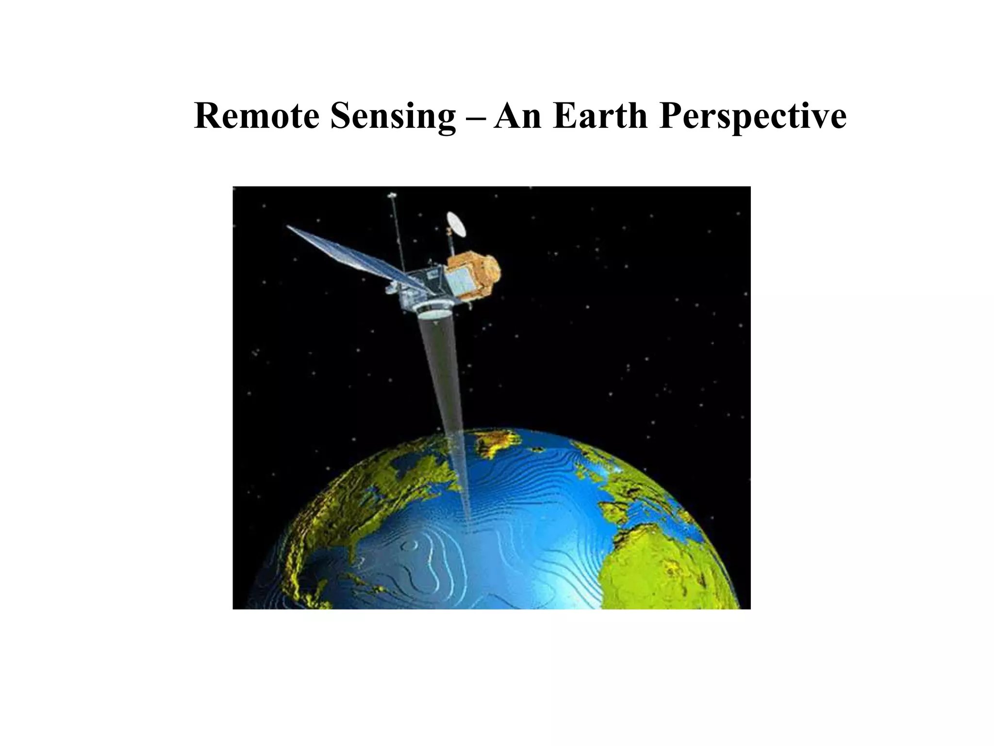 Remote sensing uses sensors to acquire information about objects without physical contact. It involves analyzing electromagnetic radiation reflected or emitted from targets. There are two main types: passive sensing which uses natural radiation sources like sunlight, and active sensing which supplies its own radiation source like radar. Remote sensing has advanced from early aerial photography to modern satellite systems that provide synoptic imaging across various wavelengths at increasing spatial, spectral, temporal and radiometric resolutions. This allows analysis of surface features and conditions from local to global scales.