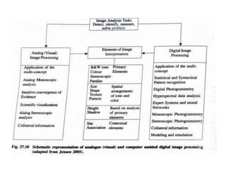 The document provides an overview of remote sensing, detailing its principles, processes, and applications in various fields including geology, forestry, and natural resource management. It describes different platforms and sensors, such as satellites and aerial systems, as well as the advantages and disadvantages of remote sensing technologies. Key applications include monitoring coastal changes, assessing natural hazards, and managing land use efficiently.